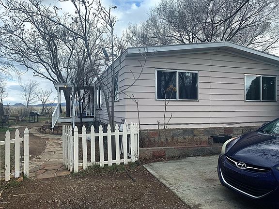 This charming, double-wide manufactured home nestled in the middle of Chino Valley is just minutes away from most the towns amenities. With 3 bedrooms, 2 full baths a dining area and a family room this home has plenty of space. Property highlights include double ovens and new tile back splash in the kitchen, interior laundry room, master bath with a garden tub, separate shower and walk-in closet, 2 sheds, partial fencing and a rear covered patio off the master with views of Mingus Mountain and the surrounding hills.