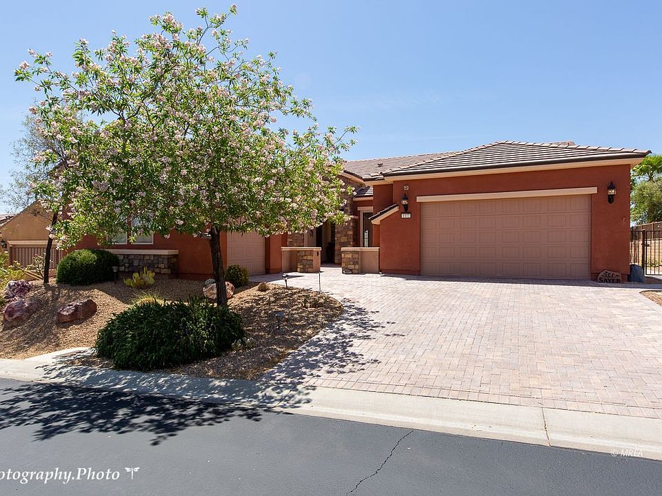Quite possibly one of the most sought after VIEWS in SUN CITY. Stunning panoramic VIEWS the 12th Fairway of the Conestoga Golf Course. Unobstructed views of the mountains, mesas and fairways. Beautiful waterfall, custom designed brick paver patio, Built-in BBQ and Sunsetter Extended Electric Awning are all features that create the ultimate comfort in outdoor living. Gated front courtyard entryway has colorful brick pavers creating another outdoor conversation area. Kitchen has "double ovens", granite counters, center island, elevated breakfast bar with seating for four. Kitchen dining area has large windows that have views out to the front courtyard. Tile has been beautifully set on the diagonal throughout the living room, dining area, kitchen and entryway. Custom designed window treatments accent most windows throughout the home. Formal dining room has views out across the fairways....what a way to dine ! LIving room has large windows that bring in lots of natural light. 3rd Car Garage....room for the golf cart No waiting 9 months for a home to be built ...MOVE-IN READY. Furnishings could be sold on a separate bill of sale. Probate will take about 90 days.