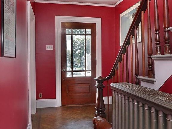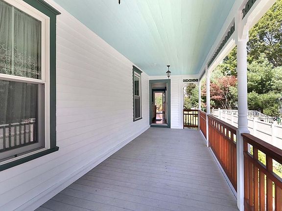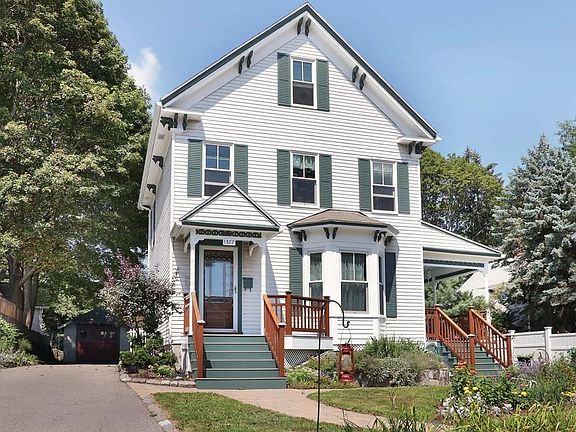Do not miss this beautiful home! Vintage early 1900's charm meets modern amenities. The 2009/2010 kitchen is renovated with Bosch = stainless appliances, generous counter space, island, half bath, built ins and full glass door to the deck addition overlooking the beautiful yard. The second floor is home to a lovely master bedroom suite, library/office with built-ins, additional bedrooms, full bath and hall stairwell to 3rd floor. The exterior is wrapped on one side by an over sized covered porch suitable for rocking chairs, summer dining. The yard is a City oasis, with a restored garage suitable for many uses. In addition, there is ample parking and basement storage. Additional features: full window replacement, 5 heat zones, stain glass, high ceilings, maintenance free exterior with HardiePlank siding on the back addition and composite decking boards on front, side and back deck/porches. Also, steps away from 2 commuter rail stations.