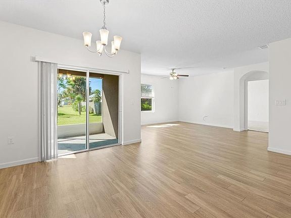 Charming one-story 4 Bedroom/2 Bath home on a quiet street in a beautiful neighborhood in Sebastian, FL. This home combines contemporary features with an open-concept design. The modern kitchen boasts a large island for bar-style dining or entertaining, a walk-in pantry, Stainless Steel appliances and ample cabinet and counter space. The dining and living rooms both overlook a covered lanai, perfect for outdoor relaxation and al fresco meals. The spacious primary bedroom, tucked away for privacy, fits a king-size bed and features an en suite bathroom with a double vanity, walk-in closet, and linen closet. Three additional bedrooms share a second bathroom. A two-car garage connects to a hallway with a laundry room and extra storage.