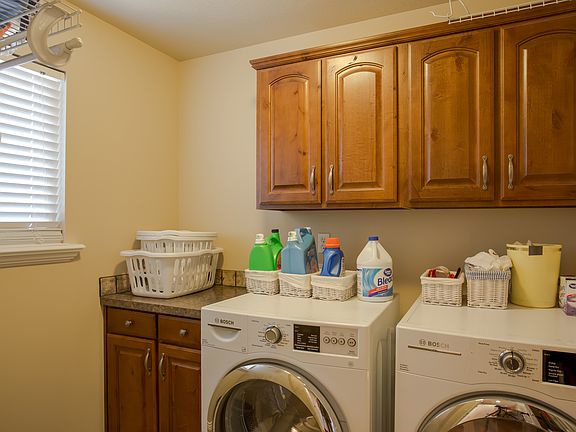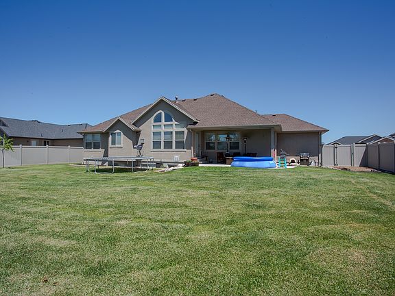 Beautiful and spacious custom rambler in nice neighborhood. Extra tall ceilings and vaulted, impressive great room area is excellent for entertaining and features gas fireplace. Large kitchen has granite countertops and island bar, along with an extra roomy kitchen perfect for entertaining. Kitchen has granite countertops, stainless appliances. Large covered patio, and fully fenced backyard, complete with fruit trees and raspberries and strawberries to enjoy next year. Master has walk-in closet, jetted tub, separate shower. Granite counters in bathrooms. 3 car garage and RV parking! Basement entrance through garage.