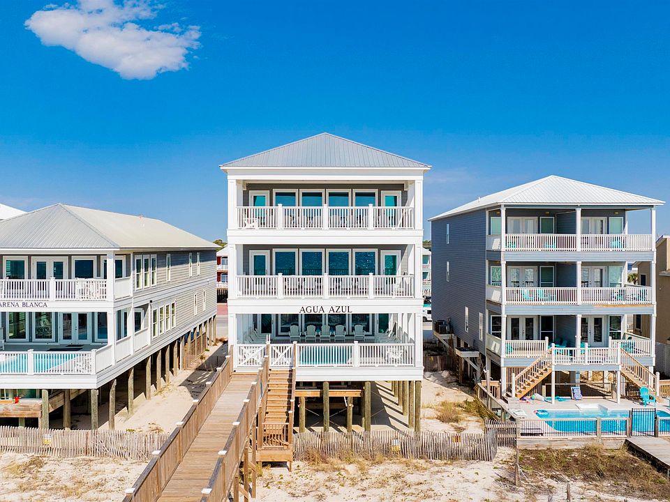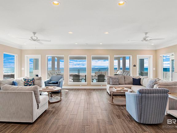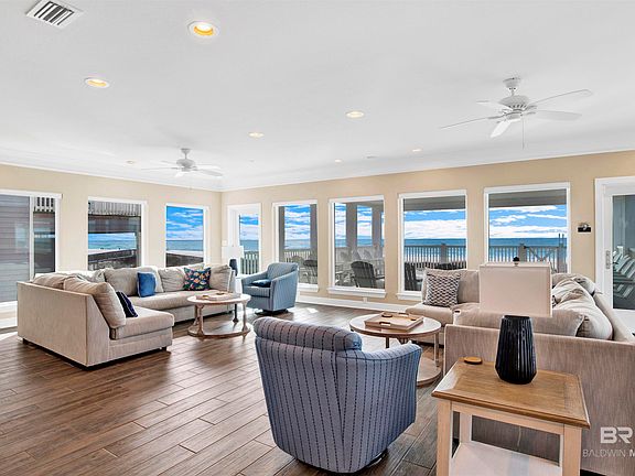 Stunning Gulf-front home in Gulf Shores, Alabama situated directly on the Gulf of America, along the coveted West Beach in Gulf Shores. This extraordinary 15-bedroom, 14-bath & 2 half baths home is designed for both entertaining & maximizing rental income. This home boasts breathtaking views of the Gulf & unparalleled amenities that will leave guests in awe. The home features a private 12x24 saltwater pool, perfect for relaxing after a day on the beach, and a beach walkover providing direct access to the pristine sand. An engineering marvel, the living area on each floor offers unobstructed, panoramic Gulf views that span an impressive 30 feet. Accessibility is a breeze with a state-of-the-art elevator featuring an automatic door, in addition to a central stairwell that services each living floor. For maximum flexibility, the home offers the rare ability to "lock out" each floor, allowing for various rental configurations - rent the top, or main floors individually, or the top/middle or main/middle or, the entire property for larger groups. The home is equipped with two full kitchens: one on the main floor and another on the top floor, each with a 100 lb/day icemaker. The main features two dishwashers, ovens, & refrigerators. There are also two laundry rooms, one on the main & the other on the top level. Outdoor living is equally impressive, with polywood furniture on every deck. The main level deck is home to the pool. Throughout the home: 9' ceilings, elegant tile flooring, a fire sprinkler system, hurricane doors, impact glass, multiple owner closets & more. Over $400k in rentals in 2024! This home is a must see for the discerning buyer. Rental restriction by management company & may vary. Buyer to verify all information during due diligence.