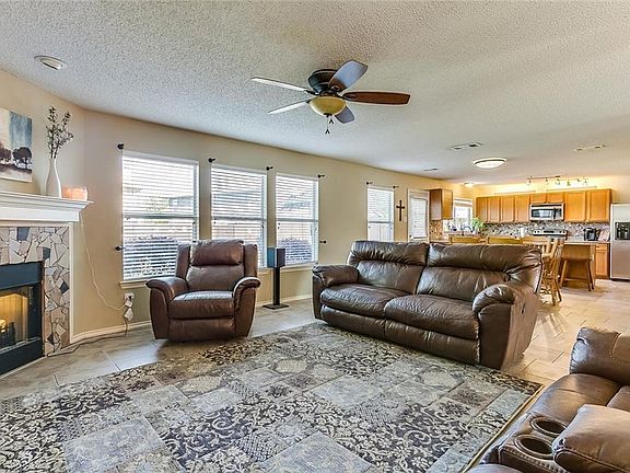 Beautiful family home in Roanoke has lots of natural light and open concept. Tile throughout downstairs living, dining and kitchen. Study has wood flooring. Large kitchen with granite counters, island, above cabinet lighting, stainless appliances, custom backsplash that matches fireplace and walk-in pantry. Huge backyard large enough for pool. Forty-gallon rain barrel on side of home. Elementary school and middle school are both within walking distance.