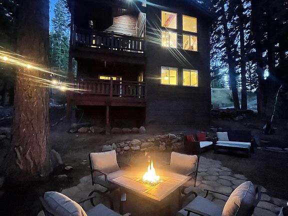 4-12 MONTH LEASE at $6,850/mo plus utilities The Blue Moose is a stunning mountain-style home, located in the North Lake Tahoe resort community of Tahoe Donner in Truckee. Your fully-furnished 4-bedroom home as 2 master suites, queen bedroom, bunk bedroom, and 3.5 baths. The lower level features an additional large home office/media room, complete with workspace, wet bar, gas fireplace, soft seating, and large flat screen TV. As your home backs up to National Forest land, you will enjoy an incredibly peaceful setting on a quiet road, along with amazing hiking and biking trails along Alder Creek, which can be accessed directly from our back yard. The home features a tasteful mountain theme, with comfortable quality furnishings. The unique design of this custom home is ideal for spreading out and remote work. The main level features a kitchen area with breakfast bar, free-standing pass-through gas fireplace between the living room and indoor pub dining area, and a beautiful formal dining room with ample seating for special holiday gatherings. Easily accessed from the kitchen, indoor pub and formal dining room is a covered deck with gas BBQ and four-seat outdoor pub-height dining table. The upper level includes a half-bath for guests and an en-suite master bedroom. The lower level features a second en-suite master bedroom with separate bath and shower, queen bedroom, bunk bedroom, and full bath. Nestled away from the bedrooms is the large media room and office. The covered deck on the lower level features a wonderful Hot Springs spa that can be accessed through either the master or queen bedroom. Access from the street to the garage is easy and the garage includes a second refrigerator/freezer that makes unloading a breeze. Located under the garage is a very large locked storage area for all of your Tahoe gear. Other highlights of our home include an automatically engaged Generac Whole House generator, gas fire pit and seating in the amazing back yard, and hard piped natural gas grill. Your home includes access to Tahoe Donner's incredible amenities, for an additional fee paid to the HOA. Some of the many Tahoe Donner recreational amenity highlights include two swimming pool complexes, large gym, tennis courts, private beach at Donner Lake, championship golf course and clubhouse, archery, equestrian center, downhill and cross-country skiing, mountain bike center, numerous trails, and the list goes on. You will also have access to the Tahoe Donner market, pizza restaurant, and fine dining and bar at the Lodge. Please make sure to view our Matterport interactive home tour! Offered fully furnished One dog possible on long-term lease, subject to owner approval and $200/mo pet fee Tenants pay utilities, etc. Our home is strictly non-smoking No subletting First & Last Months Rent plus Security Deposit