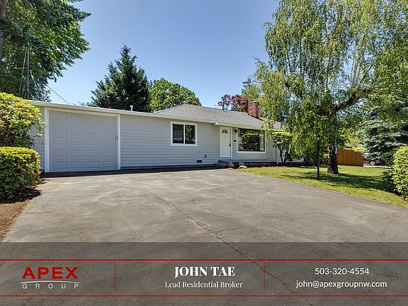 Immaculate remodel on large corner lot. Move in ready with many updates:kitchen w/quartz, Hardie Plank siding, roof, paint, sewer, windows, flooring, Spacious living room with fireplace and hardwood floors. Beautifully landscaped private fenced backyard, deck, oversized dream garage. Commuter and entertainer's delight. 5 mins to Nike, EZ access to Hwy 26.