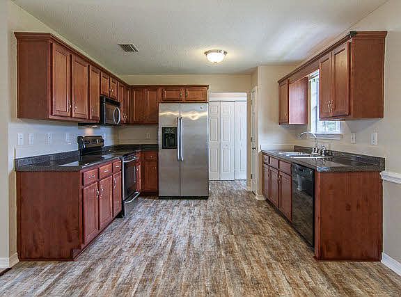 This nicely renovated 4/2 is a must see! This gem features a split floor plan with new paint, new vinyl plank flooring, new carpeting, stainless steel appliances, new countertops, and new hot water heater. This brick home is situated on a quiet cul-de-sac with a large front porch and a spacious fenced in backyard with storage shed. Move in ready, USDA, no money down eligible. Great location - convenient to schools, shopping and restaurants. Schedule your showing today!