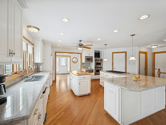 Welcome to this beautifully maintained first floor primary suite townhome in the prestigious Kensington Estates 1 of Lemont where comfort, elegance, and convenience come together in one exceptional residence. This stunning home features a main level primary bedroom suite plus three additional bedrooms, two on the second level and an optional fourth bedroom or office in the finished walkout basement. The expansive 18' x 31' kitchen and dinette is an entertainer's dream, seamlessly connected to the inviting family room with a fireplace and large windows offering serene pond views. The kitchen includes upscale appliances, custom cabinetry, a generous island with power, and a convenient prep sink ideal for cooking and entertaining. Convenience is unmatched with two laundry areas, a spacious main level laundry with cabinets, sink and large closet, plus a second washer/dryer and sink in the finished walkout basement. The primary suite offers a spacious bath with a large separate shower and soaking tub. Upstairs you'll find a bright loft area, two well-sized bedrooms, a full bathroom, and a large walk in attic providing exceptional storage. The finished walkout basement expands your living space with a well appointed kitchenette area, sink, refrigerator and storage, perfect for guests or entertaining. A full bathroom, a walk-in tub, and substantial storage with built-in shelving finish out the basement space. Outdoor living is impressive with both a deck and patio, perfect for quiet mornings or sunset views overlooking the water. The deck also features a built-in Weber grill with gas hookup and mainteance free decking. 2 car garage with heated floors, complete with hot and cold water hookup, a floor drain, and an epoxy finished floor. The entire home has been freshly painted in a warm neutral palette and the property includes numerous mechanical and quality upgrades throughout. A few being newer roofs, new hot water heater-2025, brand new ejector pump, heated floors in master bath, basement and garage. Ideally located minutes from Cog Hill Golf Course, shopping, dining, and top-rated Lemont schools, this home offers luxury living with unbeatable convenience.