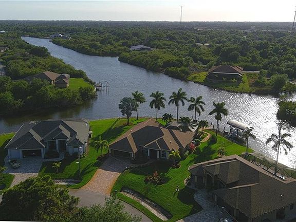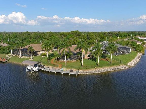 Immaculate waterfront oasis with endless upgrades that is sure to impress. This house sits on an 18,300 square foot TIP LOT than spans 168 feet across the entire tip. The TREX dock comes in at an amazing 70 feet in length and has plenty of lighting for night time activities. Dock is fully equipped with power and fresh water hookups. Attached to the dock is a 10,000 lb boat lift that features a new cover. Looking down in the water at night you will find the under water fish lights that attract all kinds of fish including large snook. Professional landscaping throughout the yard with hard wired lighting to the large Royal Palm Trees. Low voltage lighting surround the pool cage and front walkway to help you find your way easily during the night. Pool cage has been completely replaced with large picture screens that open up the view of THREE intersecting waterways. Walking up to the house you will first find the newly screened front entry that allows you to leave the front door open providing a nice breeze throughout the house. Once inside you can immediately see the water views from just inside the front entry and almost every window in the house. Tall Cathedral ceilings and crown molding throughout will take your breathe away as well. There are 3 bedrooms, 2.5 bathrooms, and an office all under a large 2,465 sq ft under air floor plan. The office features a built in Murphy bed with bookshelf and a built in desk. Whole house is wired with top of the line security cameras equipped with recording software. The entire house is also wired for fiberoptic cable. Kitchen has been tastefully updated with beautiful QUARTZ counter tops, top of the line appliances, and all new cabinet hardware. A brand new POOL HEATER will have you swimming in temperature controlled water all year long. Never worry about losing power as there is a WHOLE HOME GENERATOR if the power ever goes out. Plenty of space for vehicles and storage in the OVERSIZED two car garage. This is truly a one of a kind property that words and pictures can't fully explain. Contact agent TODAY for a private showing as this one will sell fast!