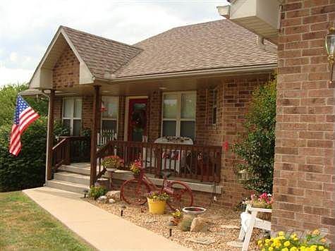 Beautiful brick home on 3.75 acres with spectacular view. Large garage/workshop in back with electricity and access to water. Lots of storage and room for multiple vehicles. There is a fenced area with loafing shed. Nice storage shed could be used for small fowl and fenced area for calf, etc. Walk out finished basement with covered patio. Large deck off living room. Patio area has Koi pond - above ground pool and lots of beautiful landscaping. Large deck and patio. This is a beautifully decorated home with so much to offer. Split floor plan bedrooms. Pools stays. Pool table negoitable. Appliances 3 years old. Wired for satellite and high speed internet. 220 power in shop in two locations. Power in all outbuildings. Raised bed garden. Basement has new tile,carpet and wood ceiling. Wired for hot tub in game room on East room in basement. Surround sound available in basement. Full finished basement perfect for family gatherings, etc.This is a must see property! It will sell itself! Brokered And Advertised By: Century 21 New Beginnings Listing Agent: Judi Russell