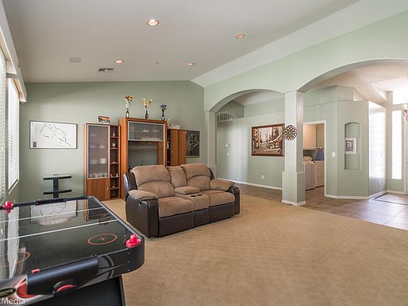 This beautiful home offers just about everything you would want in the perfect back yard! Large gated pool, sport court, putting green, turf and firepit. Large home with split 4/2 floorplan + an office allows ample room for your whole family! Open floorplan, high ceilings and lots of windows means its light and bright too! Kitchen boasts gas cooktop, SS dbl wall ovens and appliances, granite tile counters and 50 bottle dual wine fridges. All appliances will stay with the home. Master is split with large walkin closet, double vanity, garden tub and walk in shower. This area is the perfect place to live with easy access to freeways, shopping and restaurants as well as amazing schools and hospitals. Seller to credit $2500 for new interior paint as well.