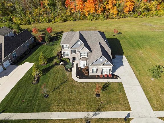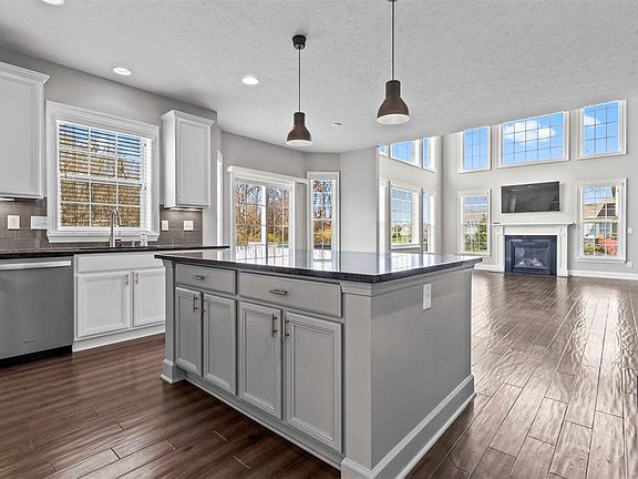 Luxurious 6 bedroom home on one of the best homesites in the popular Westmont, located in Carmel! Featuring a breath-taking 2-story great room, oversized custom designed windows, granite surround fireplace, dual stair cases, wide-plank true engineered hardwood on main level, elegant office with bay window, one bedroom & full bath on main level, owner suite with cathedral ceiling, walk-in closet with custom shelving system. The modern kitchen boast granite countertops, stainless steel appliances, tile backsplash and more. The daylight basement is finished with bdrm & full bath, wet bar RI, LVP flooring. Custom wainscoting, crown molding, window casings, 6" tall baseboards and 3 car+ side load garage round out the home. This is a must see!