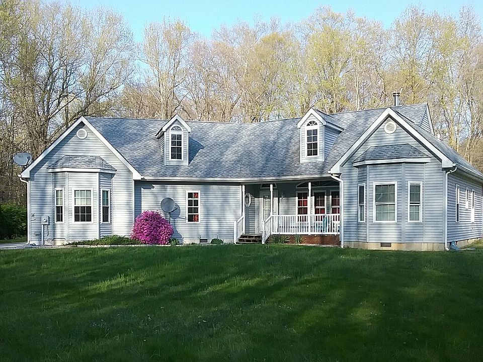 Set up for horses/livestock. This custom built home is close to the Delaware/Middletown area. Beautiful 9.36 acres with multiple sheds, run-ins for horses, stalls, fenced paddock. Home has 3 bedrooms, 2 .5 baths, a 2 car garage & a concrete parking pad, & 1715 sq feet of living space. There is a relatively new wood stove, split floor plan, enclosed porch, private spot!