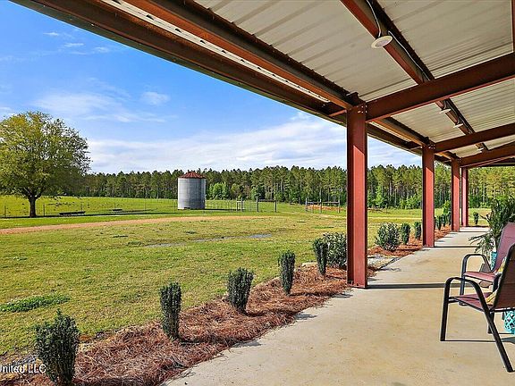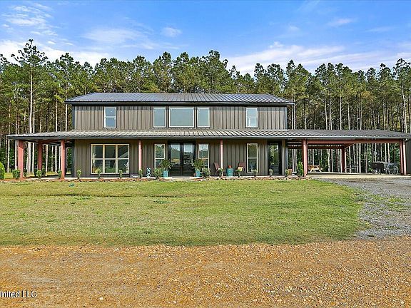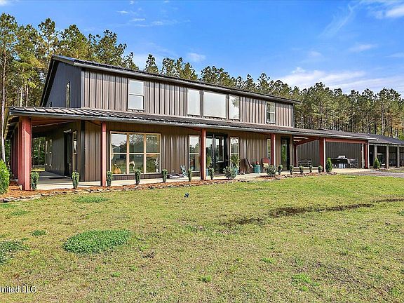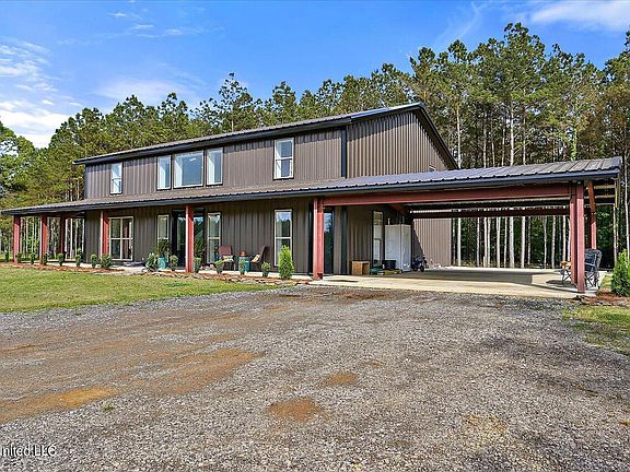 Paradise awaits! Breathtaking property tucked away quietly from the fast pace of city living, but located in Terry MS, not far from the Interstate to which city can easily be accessed. This property has stunning views from every direction, space for the family and the farm! There is so much to take in, beginning with the 1 mile long gravel road that leads to the gate in which you enter! Massive Barndominium boasting 3,548 sq/ft, along with a 5 car garage/shop all situated on 10 sprawling acres! Beautifully landscaped, tons of natural light, and jaw dropping scenery will have you never wanting to leave home! With 6 bedrooms, 4 full baths, 2 half baths, plus an office/flex space, raise a growing family or host a multitude of guests, there's room for everyone! Wrap around porch, metal roof, extremely well insulated, soaring ceilings, incredible finishes, those are just a few of the features of this home. When you enter, you will be awed by the soaring ceilings and the open floor plan, massive kitchen island with quartz counter tops, farm sink, walk-in pantry, and storage galore! Open to the eating area and the oversized family room! Guess what? The fridge and tv remain with the home! The primary bedroom is on the main floor and the primary bathroom has a soaking tub, dual vanities, a beautiful tiled shower and nice sized walk-in closet! Thinking practically, the owners placed the washer/dryer inside the closet! Such a time saver! There is an office area downstairs as well as another bedroom and upstairs is plushly carpeted with 4 more bedrooms and a small play area! The house has a 2 car attached carport but just a short distance away, you will find a 42x75ft shop on a concrete slab, complete with 5 garage bays and water hookup! This 10 acres is partially fenced for cows with views of the a 7.6 acre lake that could also be purchased with additional acreage, up to 53 acres is available for purchase! Raise cattle, horses, goats, or any other animal your heart desires and live the good life...till the cows come home. Call today for a private tour of this magnificent, and truly one-of-a-kind property!
