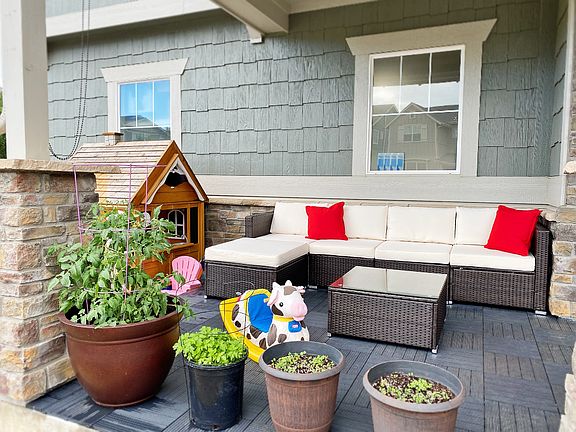 Modern, low-maintenance, energy-efficient home in prime location! This thoughtfully maintained home offers the perfect blend of comfort, efficiency, and convenience. Ideally located within walking distance to grocery stores and a variety of dining options, and just minutes' drive from nearby shopping centers, this property also provides quick access to I-25, making daily commuting effortless. Enjoy the outdoors with McKay Lake and McKay Parks close by, offering scenic trails and recreational activities. Directly in front of the home, residents enjoy beautifully maintained gardens, green spaces, and a restful seating area cared for by the HOA providing a serene environment without the maintenance responsibilities. Additionally, the home offers private access to the community pool, perfect for relaxation and recreation during the warmer months. The property features a charming, finished front porch overlooking a professionally landscaped front yard with a raised garden bed and a vibrant perennial flower garden perfect for plant lovers and those who enjoy outdoor living. The interior includes a finished basement, offering additional living space to suit a variety of needs. Designed for low-maintenance living, the house is fully equipped with durable finishes throughout. All kitchen appliances, along with a washer and dryer, are included for your convenience. Energy efficiency is prioritized with a solar panel system reducing monthly electricity costs and a tankless water heater with a recirculation system providing unlimited on-demand hot water. Additional modern amenities include smart home features such as smartphone-controlled lighting and door locks, a whole-house ventilation fan for improved airflow, and a dedicated EV charger for electric vehicle owners. The extended two-car garage is enhanced with ceiling-mounted storage shelves, offering abundant storage space. Pets are warmly welcomed with an additional fee. Monthly trash service is included. Experience the perfect combination of modern living, eco-friendly features, and exceptional community amenities schedule a private showing today. Owner pays for trash service. Renter is responsible for water, gas and HOA violation if any. No Smoking is allowed.