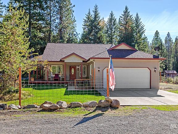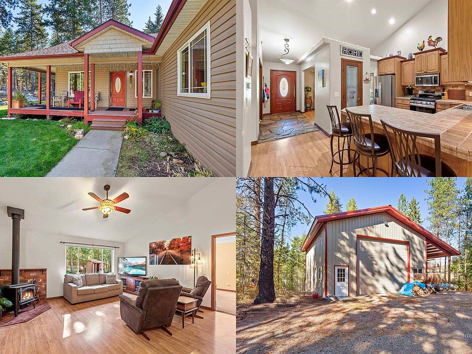 Come see this charming and well maintained 5 bed 3 bath home with plenty of storage options including a 30x40 heated shop, 12x40 lean to, and 18x30 carport in addition to the attached 2 car garage. The over 12 acre property has a mile and a half of trails to ride on with a small cabin to escape to. The home features a main level master suite with walk-in tile shower, large soaking tub, and double sink vanity. This heated and air-conditioned home includes other features like a Kuna high efficiency wood stove complete with 2 cord of wood, a formal dining room, stainless steel appliances, vaulted and coffered ceilings, wrap around deck, continuous gutters, and radon mitigation system. The front and back lawns are beautifully landscaped with a sprinkler system and 2 water features. Other features include a chicken coop, storage shed, greenhouse, and a bountiful variety of fruit like strawberries, blueberries, currents, raspberries, blackberries, and a grape vine!
