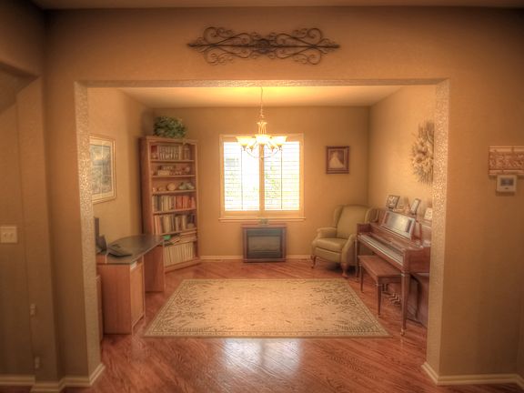Luxurious features abound in this former model home with over $100,000 in every upgrade imaginable! This 4500 square foot, 5 bedroom, 3 full bath home boasts a gorgeous gourmet kitchen with upgraded counters, SS appliances, eating nook and island, double ovens, 46in Cherry Cabinets, formal dining, main floor living room has gas fireplace with custom mantle, office/study, hardwood floors, 10 foot ceilings, master suite with five piece bath, two additional large bedrooms and second bathroom with double sinks, main floor laundry room, whole-home audio, professionally finished basement with 9 foot ceilings, theater room wired for surround-sound and all theatre equipment included, full basement kitchen including appliances and wine fridge, huge rec-room, full bathroom with heated floor and potential fourth bedroom. The 3-Car garage provides ample room for even the largest vehicles plus storage. The private, professionally landscaped back yard is perfect for children, pets, adults, gardening, relaxing and grilling with stamped concrete patio, shade trees, and sprinkler system. Additional upgrades include: 98% Efficient HVAC, whole-house attic fan, 50 gallon water heater and concrete tile roof.