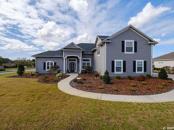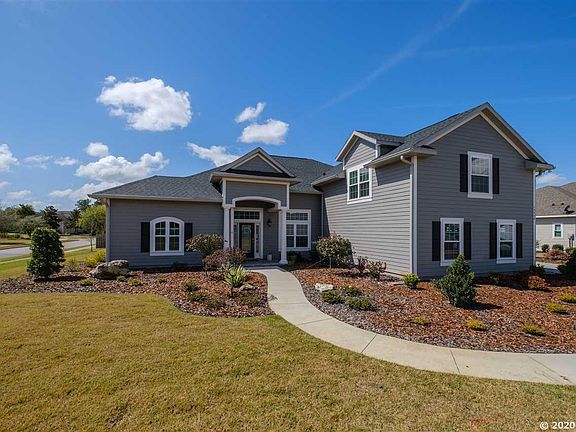 Great design, elegant finishes and wonderful curb appeal combine in this 4 BR 4.5 BA plus study/flex room home, custom built in 2017 with 2' by 6' construction. The open floor plan features a downstairs master suite with 2 auxiliary bedrooms and a study; upstairs, there is an oversized bedroom and full bath. A formal dining room opens both to the great room and kitchen, which features custom cabinets and drawers, a 4 burner gas stove, stainless steel appliances, custom granite countertops and drawers, subway tile backsplash, a large pantry area and an adjoining sunlit breakfast/morning room. Open and bright, the home includes a breezy, screened in back porch with brick pavers, a great place to relax with friends and family to enjoy the beautifully landscaped yard located on a 1/3 acre corner lot. The home is finished with wood flooring ,granite countertops in the kitchen and all bathrooms, upgraded baseboard and crown molding, window casings, transom windows and upgraded lighting. Additional features include an oversized and finished 2 car garage, solar panels and an irrigation well. Located in Turnberry Lake, a community that offers great school districts, sidewalks throughout, a pool, playground, cabana and lake.