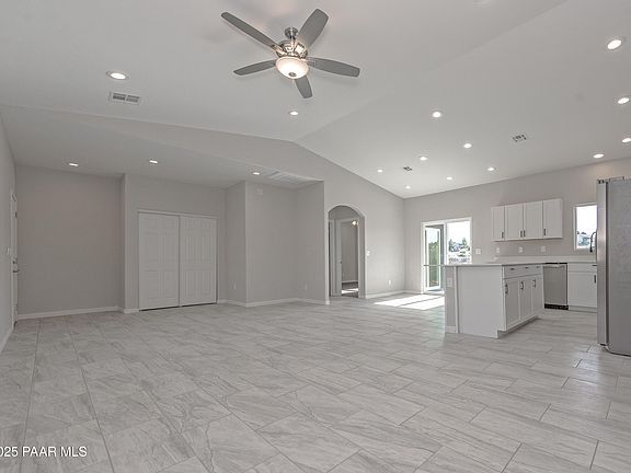 • Ceiling Fan(s), Solid Surface Counters, Eat-in Kitchen, Kit/Din Combo, Kitchen Island, Liv/Din Combo, Live on One Level, Master Downstairs, High Ceilings, Walk-In Closet(s)