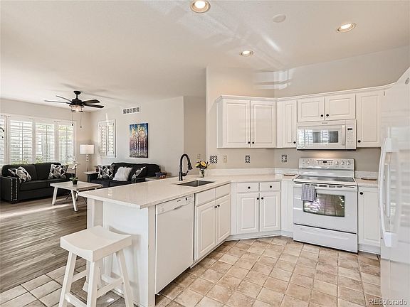 Welcome to The Falls at Legend Trail! This friendly neighborhood is located within The Broadlands Golf Course Community. This charming ranch home is nestled in one of the most desirable locations in the area with lush landscaping and mature trees. Fully remodeled with beautiful marble countertops through the kitchen and bathrooms! New floor, toilets and lights with fan in all living, dining and master room. Featuring an open and bright living room, dining room and kitchen with plenty of cabinets, counter space and a pantry. 2 cozy bedrooms, 2 bathrooms and 5 pieces master bathroom with a spacious walk-in closet. The washer/dryer sit in the large mud room that leads into the attached, oversized 2-car garage. Enjoy your morning coffee on either of the two covered patio spaces. Just minutes from downtown Broomfield, the Outlets, I-25, The Broomfield Commons Open Space, Trails, Parks, Shopping and Dining options. Don't forget to check out the community amenities including 3 pools, fitness center, tennis courts, and clubhouse. Come see this beautiful home & neighborhood for yourself! Buyer and Buyer's agent to verify all information. This unit is Handicap accessible!