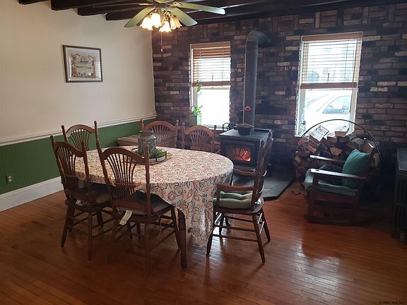 Charming 1890's country farmhouse with many updates. Enclosed front porch, some original wide board honey pine floors, some oak hardwood. Dr w/woodstove and wainscoting, LRw/gas fp and built in book shelves. Updated full and half baths on the first floor, Sweet retro kitchen w/ a small porch to the massive back yard. There are three bdup, privave master ba and plenty of closet space. Detached 2c gar has an attached workshop both with elec. Roof is 10-15 yrs old.