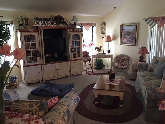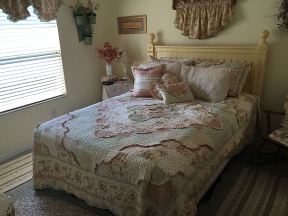 Wow, this your First time in Villages, this a great house, with a great location in SUNSET POINTE, just 2.5 miles from SUMTER LANDING and priced for you, to make it your OWN! CENTRALLY LOCATED around Cane, Mallory, Huron and Pelican golf course makes this the golfer first choice. This House was GENTLY USED for many years, WELL KEPT and MAINTAINED. House backs up to quiet street no kissing lanai's! This Camellia model has 2 bedrooms, Den, 2 FULL Baths; eat in Kitchen, Breakfast Bar, Pantry, Large Kitchen and Open floor plan. Master Suite is large with his and her walk-in closets, dual sink and vanity. This home comes with a washer and dry. Additional items are PAVER driveway, frame-less sliding Front screen door, volume ceiling, and neutral colors. EXTREMELY CONVENIENT location to the pool Rec centers and Pools. DON'T MISS IT Annual Bond Debt $1,125.79 - Bond Balance $12,717.41 Annual Main $659.76