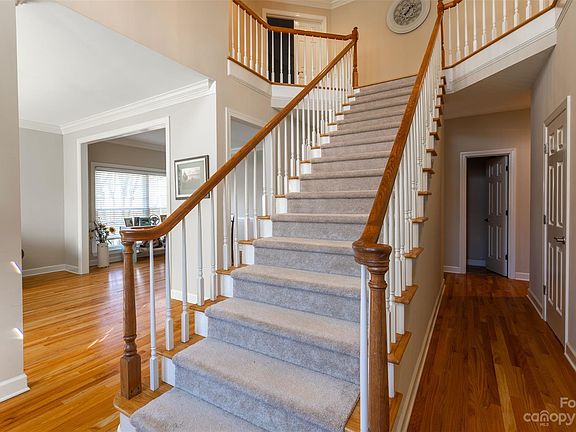 Beautiful Full Brick 4 bedroom home on over a half acre lot in Desirable Carriage Downs Community. Newer Vinyl windows, Roof, HVAC and Deck. Grand Staircase Upon Entry into the home. Kitchen with Granite Countertops, Tile Backsplash, Wall Oven and Island. Main level Office with French Doors. Wood floor Throughout the Main Level. Spacious Primary Bedroom with Trey Ceiling. Primary Bathroom with Large Garden Tub and Shower, Dual Vanities and Tile Floor. Side Load Garage. Lots of Closet Space and Storage. Conveniently located near shopping, dining, and entertainment.