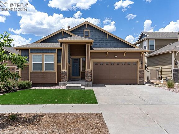 Take a look at this beautiful 3400+ sq ft ranch home with a finished walkout basement. Your journey starts with a covered porch area at the front door, which opens up to an open kitchen and family room. The main floor features an additional bedroom, full bath and designated office as well. Stop by the deck to see the beautiful mountain views before you continue to the primary bedroom, equipped with a 5pc bathroom and walk in closet. The floors have been recently replaced with a lower maintenance LVT. Laundry is upstairs for simple main level living. Downstairs, you'll find 3 additional bedrooms, a media/theater room, and a walk out to the rear yard. Plenty of space exists for a home gym, second family room, or whatever other needs you may have. The already turfed landscape keeps offers a low maintenance experience. Easy access to 24, I25, For Carson, Petersen AFB, Airport, downtown, and so many other great amenities.