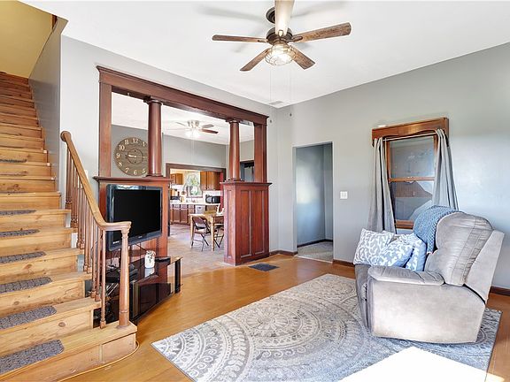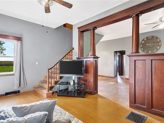 GET EXCITED!!! This Property is EVERYTHING you have been Looking for! This Home offers a Centralized Location w/a peaceful Country setting on 2 acres PLUS an AMAZING 3 car garage inspired with the Ultimate Man-Cave in mind! The moment you pull in the drive you will feel the very cool vibe of this very well-kept property from the cattle gate entrance, tree-lined driveway w/hanging swing, strip of original wood fencing and even the view of the oversized front porch. Then make use of the generous amount of space this Classic 2 Story Bungalow offers w/2 living areas & 4 bedrooms! Can you imagine combining your personalization with all this older charm? Throughout you will find lots of original hardwood & beautiful doors. There is a dramatic separation of living room/dining room by heavy wood pillars double-sided w/glass-enclosed shelving on one side. Oversized family/dining room combo features unique fireplace & bench style seating with additional shelving. Main floor also houses 1 bedroom & full bath. Upstairs you will find a nice sitting area as well as 3 other nicely-sized bedrooms with walk-in closet separated by 2 of them. Unfinished basement currently set up with laundry & work bench area. The property itself is surrounded by fields providing the privacy you desire. Enjoy your evenings by the firepit area overlooking the vast yard & several fenced areas. One car detached garage that is attached to 14 x 44 building could also serve multiple uses. Most impressive though is the Attractive newer garage built in 2016 complete with 10 x 8 doors, working bathroom & a full attic above!
