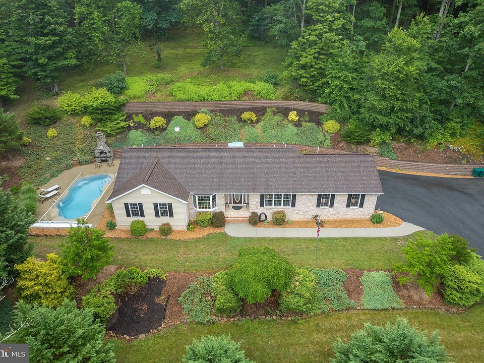 No HOA! Welcome To Fishel Road, Frederick County VA! Rural Home, But Close To All Commuter Routes, Hospital, Shopping, Doctors Offices, Grocery Stores, Schools! Quality Built Brick Ranch Home, 4 Bedrooms, With A Potential 5th Bedroom In Basement Or Office Space! Live In The Mountains, Enjoy The Fresh Air Sitting By The Saltwater Pool, And Private TreeLine! So Many Updates And So Much Thought To Them! Full Kitchen Remodel In 2018 To Include Granite Countertops And Tile Backsplash, Soft Close Cabinetry, Coffee Bar And Movable Island! Main Level Includes, Living Room, Dining Area, 4 Bedrooms, 3 Full Bathrooms and Half Bath! Hardwood Floors Resurfaced, Primary Bedroom And Bathroom Remodeled In 2020-Large Space With Sitting Area, Primary Bathroom Has Tile Stand In Shower, Heated Floors And Walk In Closet! Living Room And Dining Area Repainted. The Basement Is Approx 1300 Finished Square Feet With Additional Storage, Full Bathroom, Recreation Area, Sitting Room And Utility Room! (Will Be Full Repainted By 06/20/2023)! HVAC New In 2021, New Well Pump, New Shutters 06/2023, New Roof 2023! The Outside Of The Home Is A Paradise! Viking Fiberglass Latham Pool With Retractable Cover, The Deck Area Is Spacious With An Outdoor Stove Fireplace! Detached Garage Has A Studio Area That Includes 1 Bedroom And 1 Full Bath. Both Home and Garage Have Water Treatment Systems! Garage Is Oversized And Has Own Electric Meter. There Is A Retaining Wall In Back Yard That is Engineered Block and Draintiled Behind It. There Is A Space For A 42 Foot RV With 50 Foot Amp Service! So Much More! Studio Area Is Occupied By A Tenant. Pool Pump Replaced 06/24/2023! Chickens are allowed, as this home is zoned RA.
