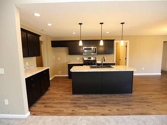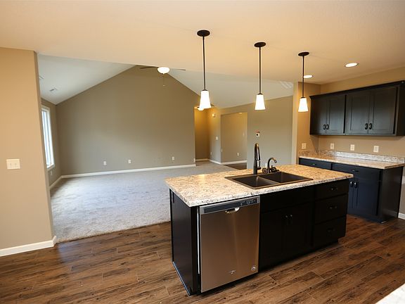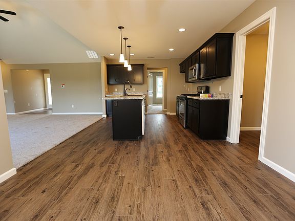 Beautiful new home in Willow Ridge North. This split bedroom ranch home is situated on a corner lot with a side load garage. The kitchen offers custom hickory stained cabinetry with an island, breakfast bar and walk-in pantry. A stainless steel gas range, dishwasher and microwave are included. The open great room has a cathedral ceiling and triple window overlooking the backyard. The master suite offers a private entry and also has a cathedral ceiling. A large walk-in closet provides plenty of space along with a full bathroom complete with a linen closet, 5' wide vanity and fiberglass shower. Just off the garage is a spacious laundry room with shelving. This home also offers Andersen high performance windows, larger tub/shower unit in the main bath, 15x12 concrete patio and painted interior trim and doors.
