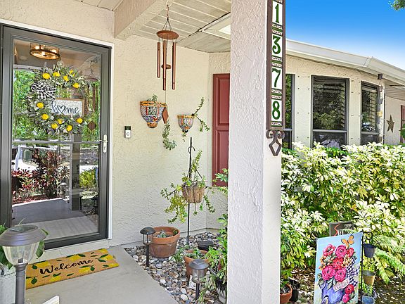 This charming 3-bedroom, 2-bathroom concrete block home is impeccably clean and has too many extra finishes to even mention. You can find complete peace of mind with an updated roof (2021), updated AC (2020), and a newer water heater (2019). Enjoy light and airy vibes with waterproof vinyl flooring and a spacious living room featuring a beautiful bay window. The kitchen offers white cabinets, a skylight, and newer stainless steel appliances. The main bedroom is spacious with a beautiful walk in shower and walk in closet! Enjoy the tranquil screened porch with custom sunshades during all months of the year! You can really enjoy the beautiful backyard grilling with family and friends! The tropical backyard paradise complete with coconut, lime, lemon, fig, olive, and gardenia trees. There is an alarm system that comes with the home! This home is MOVE IN READY and waiting for you! Close to shopping, Heritage Parkway, Restaurants, I 95.