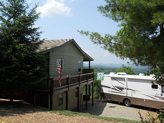 SENSATIONAL Long Range Views ! 3BR/2BA Quality Home plus RV parking. Approx 1664 sq ft of Heated living space, Southwest Exposure. Vaulted Livingroom and picture windows facing the view. Master closet w/ built-ins. Additional Den in lower level. Large covered 12' wide porch w/ pet/ child gate, lower level concrete patio. Tool Shed. Fruit trees. Fire Pit. Upper drive has Full RV hookup (water,power,sewer, 50 amp) Lower RV parking has water and power.