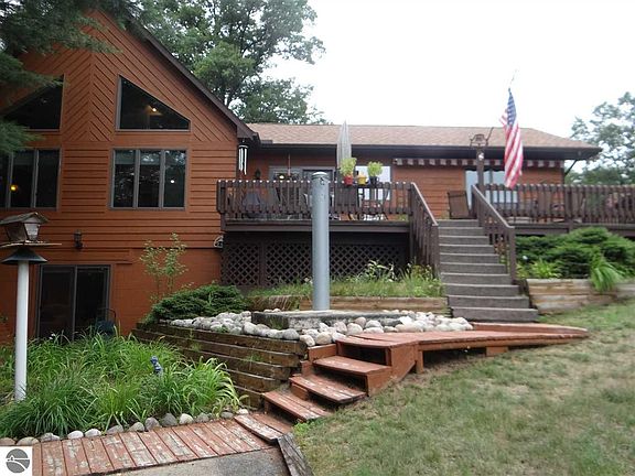 200' private waterfront on 330 Acre All Sports Forest Lake and almost 1 acre of land comes with this beautiful like new move in ready 3 bedroom, 3 bathroom home. Enjoy thel view of the lake while relaxing on your deck(s) or in living room. This 1.5 story home is cedar sided, has loft, walk out lower level with family room and game area plus wet bar for entertaining. Master bed and bathroom, main floor laundry, plenty of storage, tongue & groove woodwork, wood and carpeted floors. AC, Natural Gas and Generac Generator and more. Attached 2 car garage, 36x40 pole building for toy storage with four 12' doors for drive thru. Storage/Garden Shed. 2 Docks with Boat Storage. Approx 2hrs N of Detroit off I-75 exit 202. HOA ONLY $170 yr. Pavilion, Clubhouse, Campground, Storage Area, Activities, Beaches, Parks, Playscape, Security and other amenities are available. (The lake is currently lowered to winter level to repair decks, seawalls and spillway damage caused by heavy rains earlier this year.)