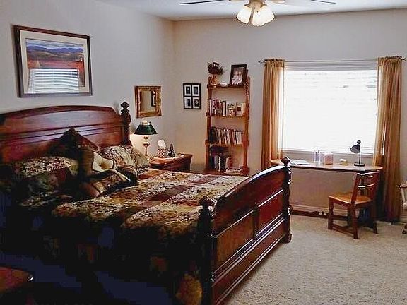 WHEELCHAIR ACCESSIBLE HOME with wider hallways, doorways & no steps coming into the home. The floor plan makes it easy to live on the main level and have extra room for family downstairs. The kitchen/dining/living room area is open. The over-sized master suite is located just off the living room, has extra room for a wheelchair, and includes a walk-in shower, jetted tub, double sinks, plant shelf, & a door to the outside deck. This 3722 SF home has 5 bedrooms, 3 baths, a formal entrance, granite counter tops, gas fireplace, pantry, family room, laundry room, water softener & built in surround sound. The lower level has a large family/game room, wet bar, 2 bedrooms, 1 full bath, extra storage, access to a golf cart garage & a walk-out door to the patio, backyard, RV Pad & a private gate to
