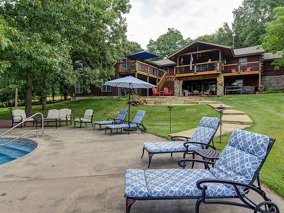 Just what you have been looking for! Approximately 20 acre secluded estate in the award winning Nixa school district is ready for new owners! Tucked away in west Nixa lies this beautiful parcel with captivating sunsets and mature trees, enjoy open space to roam, property also has a pond. Nearly 6K square feet of residence and a 30X40 shop building with 10', 14' doors, built in 2020. Also, a 2-stall horse barn., & a detached two car garage, Keep it active with outdoor fun! You have your own pickle ball court here, completed in 2023! Expansive flagstone rock that surrounds the patio, fire pit and in-ground, heated, saltwater pool to enjoy your secluded lifestyle living! Log home was originally built in 1979, with another apx. 3350 square foot addition in 2009. This Lodge feel property has been built to impress! Features including: 5 bdrs, 4.5 baths, 3 wood burning fireplaces, beautiful hardwood flooring throughout, 3 living areas, including massive main living room with wet bar & wood beamed ceiling, gorgeous stone fireplace floor to ceiling, stunning! Get ready to entertain with your own home theater tucked away in the walkout basement! A must to see to appreciate, original to its own, property! Call today for your private showing!