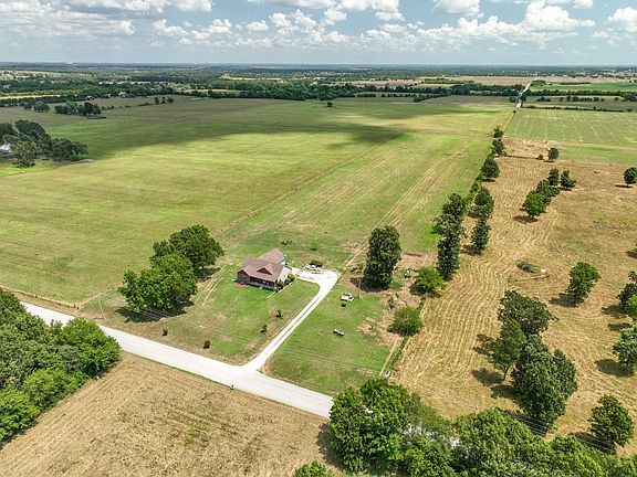 Looking for country quiet living just minutes away from the hussle and bussle of work life?Look no further at this sweet home set off the road on 10-/+ acres. No restrictions and no next door neighbors in reach. This property features 3 bedrooms and 2 baths upstairs, wonderful open concept living area with the kitchen and dining room. Kitchen has a wonderful breakfast bar island, ample amount of storage and real oak hardwood flooring. The basement is a dreamers paradise as you can make it anything you want!! With 2 enteries and exits and a built in storm shelter is sure to please! Mature trees, landscaping and a barn to boot makes this property a Gotta Have!