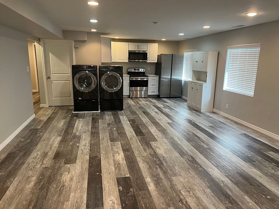 - Included: Dishwasher, Dryer, Freezer, Microwave, Refrigerator, Washer