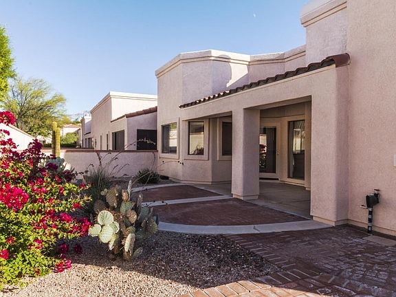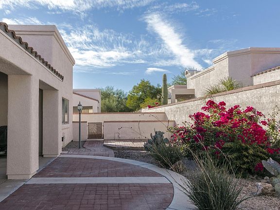Perfect patio home getaway or year round living in this two bedroom, one and three quarter bath home. The Prescott Great room floor plan offers two bedrooms with walk in closets. A dining area off the kitchen as well as the counter breakfast bar. Fireplace in the great room. Large Utility room for washer/dryer and storage. Two car garage plus room for a golf cart. This has been a snowbird home with very little wear and tear. EZ walk to the Oro Valley Recreation Center, Town hall, library, Fry's, Walgreen's and numerous eating establishments. Low HOA fee of $120.00 per month paints the building, coats the roof, take care of front yard landscaping, takes care of streets. Gates open from 6 AM to 6 PM.