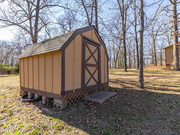 Perfect home for your family. 1758 Sq. ft home on over 4 acres in a very quiet neighborhood. Home has all kitchen appliances in place in a roomy and well laid out kitchen with a bar and a big dining area. Living room is huge and open with a wood burning fireplace ready to go. Large master bedroom with walk in closet and large master bath with jetted tub and shower. 2 bedrooms at the other end of house for kids or guest. Walk out sliding glass doors leads to the large deck outside for rest and relaxation. Two car detached garage for cars and storage and even more storage above. Two small shed are there as well. The yard is already landscaped with numerous flowering trees, plants, bushes and flowers. The back half of property is woods for privacy and barrier between neighbors. Close to Bennett Spring and Lebanon. Several Lakes are within close driving distance as well. This place has it all. Ready to move in.
