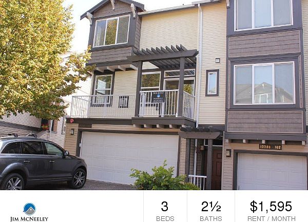 Light filled, Craftsman style condo with high ceilings, and lots of windows! Gas fireplace and central air. Hardwood floors in the kitchen and dining area. Walk-in closet. Backs to wetlands and a green space. Two-car garage with lots of room for extra storage. Great location in a quiet setting that is still close to amenities. NO PETS! ___________________ Screening Fee: $50 per adult (anyone 18 or older) County: Washington Lease Terms: 12 months Date Available for Viewing (subject to change): Now! Heat: Gas Utilities included in rent: None Utilities paid by tenants: Gas, Electricity, Water/Sewer, Garbage Appliances: Refrigerator, Range, Dishwasher, Microwave, Garbage Disposal, Washer, Electric Dryer Levels: Three Garage: Two-car with huge storage area Fenced: No Vehicle Restrictions: (no boat, trailer or RV without approval) School District: Beaverton PET POLICY: No pets allowed Special Terms: No smoking inside the premises including the garage __________________ Thank you for choosing Jim McNeeley Real Estate & Property Management, Inc. We require you to view the exterior of the property in person before we will schedule a viewing. Our application process includes, but is not limited to- * Credit, criminal and eviction check for all tenants 18 and older * Rental history verification for all applicants applying * Verifying your combined household income is at minimum three (3) times the rent amount Proof of Renters Insurance will be required before move-in. Information deemed reliable but not guaranteed. **To complete the application process, please send us copies of your ID/pay stubs and go to the PayPal page on our website to pay your application fee. Fax: 503-292-4597 Email: info@mcneeley.com (for application documents only) Square footage is approximate. School availability subject to change.