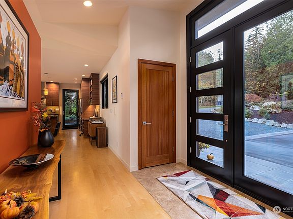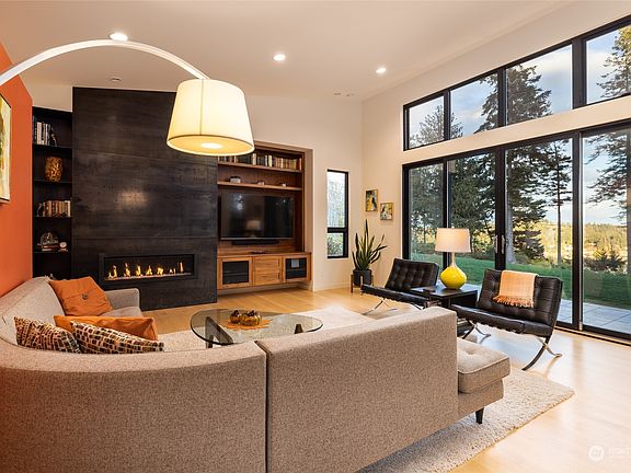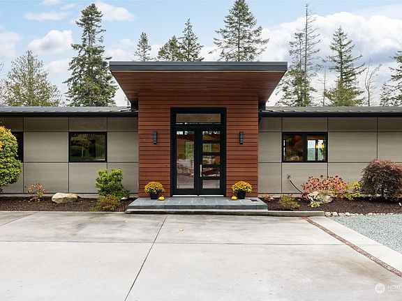Beautiful custom waterfront home on 3 serene private acres w/high end finishes. Owner/contractor built, modern open design, water & Cascade views from all primary windows. A gourmet kitchen offers cherry cabinets, lg. Island w/seating, granite slab counters, SS appliances & access to a covered patio. Great room with a vaulted ceiling, built-in walnut entertainment center & modern linear gas f/p w/blackened steel surround. A 5' wide hall leads to two guest bedrooms & full bath, lg. master suite w/soaring vaulted ceiling, soaking tub, walk-in shower, 8'sliding glass doors accessing a private patio. Deluxe laundry room w/granite counters off the 3 car gar. w/32 ft. of built-in cabinets. Installed 20KW generator, RV Parking w/full hook-ups!