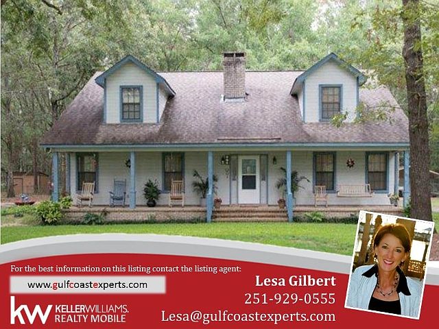 Peaceful Country Setting on 5 Acres Close To Fairhope! Enjoy Space Inside & Out! Large Eat-In Kitchen w/Split Brick Floor, 12 x 48 Screened Back Porch Off Living Room. Hidden Wet Bar in Living Room, Second Bedroom w/Private Bath, Master on First Floor. Huge Family Room on Second Floor! Wooden Shed Plus Aluminum Carport w/Storage. Gorgeous Wooded Surroundings! Great Location Too! Home Warranty.