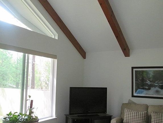 Beautiful, well maintained, quiet and move in ready 2 bedroom 2 bath home with vaulted ceiling, large open windows looking out onto the private back yard many updates! New windows, blinds, kitchen sink, updated outlets throughout too! All new kitchen appliances, new washer and dryer that are included! Two year old Tank-less water heater, new paint, new Gutter Glove Pine Tree Protection gutter guards. Natural light throughout, new skylight blinds (easy open and close). Built in vacuum system. Beautiful pink Dog Wood tree in front and low maintenance yard with automatic watering system. Gated front deck and patio in back. Go for a walk on the walking trail just steps from your back door! Attached over sized 2 car garage with very nice new garage cabinets, and lots of storage. The garage also has a door going to the back yard, its big enough to drive an ATV or golf cart! This is a non-smoking pet free home.