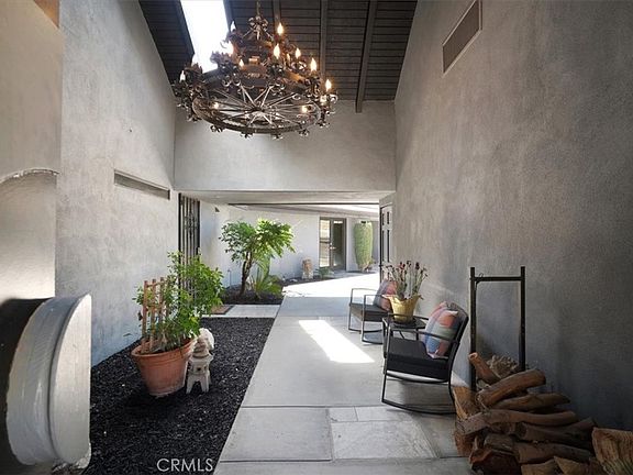 A semi-circle driveway with RV parking leads to a detached two-car garage, while a double-door entry opens to a private courtyard — a perfect secondary patio space for entertaining. Enjoy evenings outside dinning or relax in the above-ground swim spa. Multiple French doors, including one with a custom leaded glass inlay, connect every room to the courtyard, blending indoor and outdoor living seamlessly.