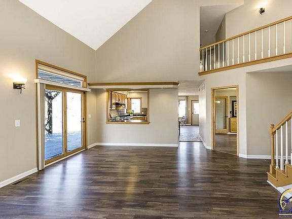 Country living at its best!!! 40 private & secluded acres of timber, pasture & pond just off blacktop & only minutes from Lake Perry, Lawrence & Topeka! 4 beds/4 baths w/open floorplan. Kitchen has island & eat-in area. Formal dining too! Floor to ceiling stone fireplace in the living room; office has a full wall of bookcases! Nice master suite. Great views from every window! Walkout basement! Well equipped 30x70 workshop w/solar panels, 2 stall barn for horses, other outbuildings, great hunting!