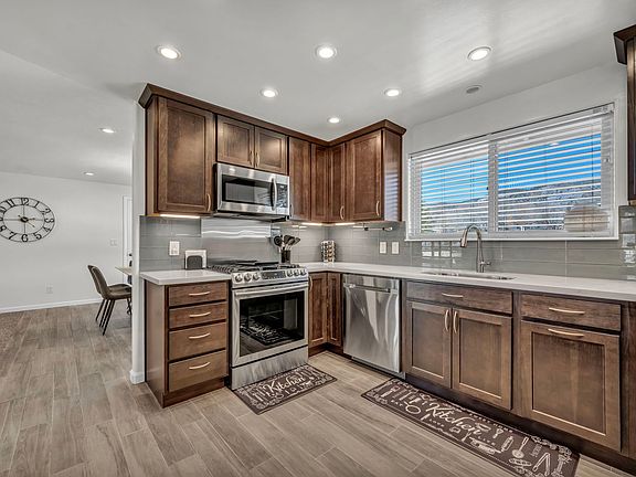 Step outside because that's where life truly happens here in this single-story, FULLY FURNISHED home. From the moment you arrive, the circular drive sets the tone with easy access and plenty of parking, whether it's the garage, driveway, RV pad, or space for boats, trailers, and toys. Then the real show begins. Most days will be spent under the covered deck, game on the big-screen TV, completely protected in one direction, while you turn around to soak in magnificent, unobstructed mountain views that never get old. Settle into the outdoor rocking chairs, fire up the outdoor fireplace, or unwind in the outdoor hot tub as the mountains frame every moment. Even the details are dialed in with artificial grass makes outdoor living and pet-friendly convenience effortless. Inside, the home is fully remodeled and exceptionally well thought out, blending style, comfort, and flow. The great room and kitchen are designed for gathering, with a stunning island in the center perfect for entertaining while you cook. Dual fireplaces with large screens create flexible living zones: one side for casual hangouts, the other anchored by the dining area and a potential desk or office space where you can sit, work, and enjoy those same mountain views. Every finish feels intentional, tasteful, and fresh. After a long day, you won't be asking why you should stay inside because you'll be heading right back out to relax under the stars. Located on the desirable south end of town with no HOA, quick access to Veterans Parkway, and an easy route to Mount Rose Highway, this property isn't just a home, it's an outdoor-focused lifestyle, perfectly framed by mountain beauty and designed to be lived to the fullest. Must see to appreciate.