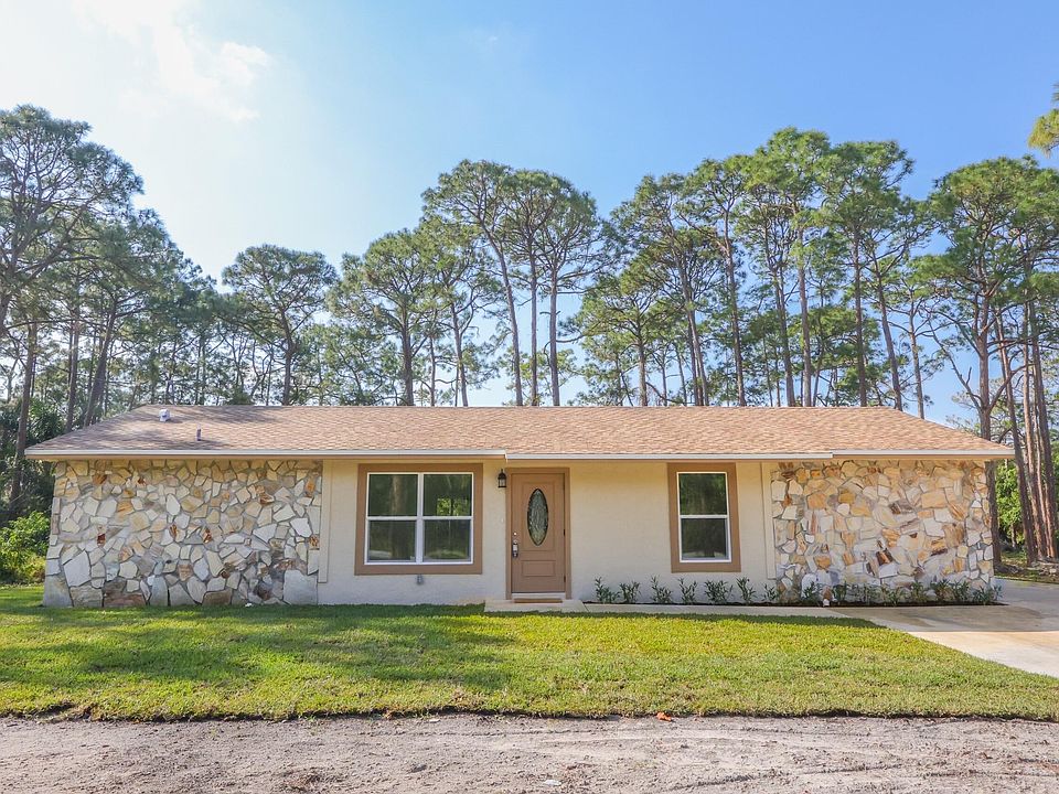 Introducing a stunning 3 bed, 3 bath property in West Palm Beach, located in a neighborhood with no HOA restrictions. The converted garage provides additional space and flexibility and a third bathroom has been added, is workmanlike manner. This property sits on an enormous 1.33-acre treed lot, offering ample privacy and a serene environment.The completely remodeled interior boasts all new tile flooring and updated appliances, creating a modern and sophisticated feel throughout. The master bedroom features a walk-in closet, as well as a stunning bathroom with dual sinks and a standalone shower.The enormous backyard area is perfect for outdoor living and entertainment, offering a huge space for relaxation or hosting family events. This property is a rare gem, The completely remodeled interior and modern appliances creates a comfortable and stylish living environment. Don't miss out on this opportunity to own a peaceful and private oasis in the heart of West Palm Beach.