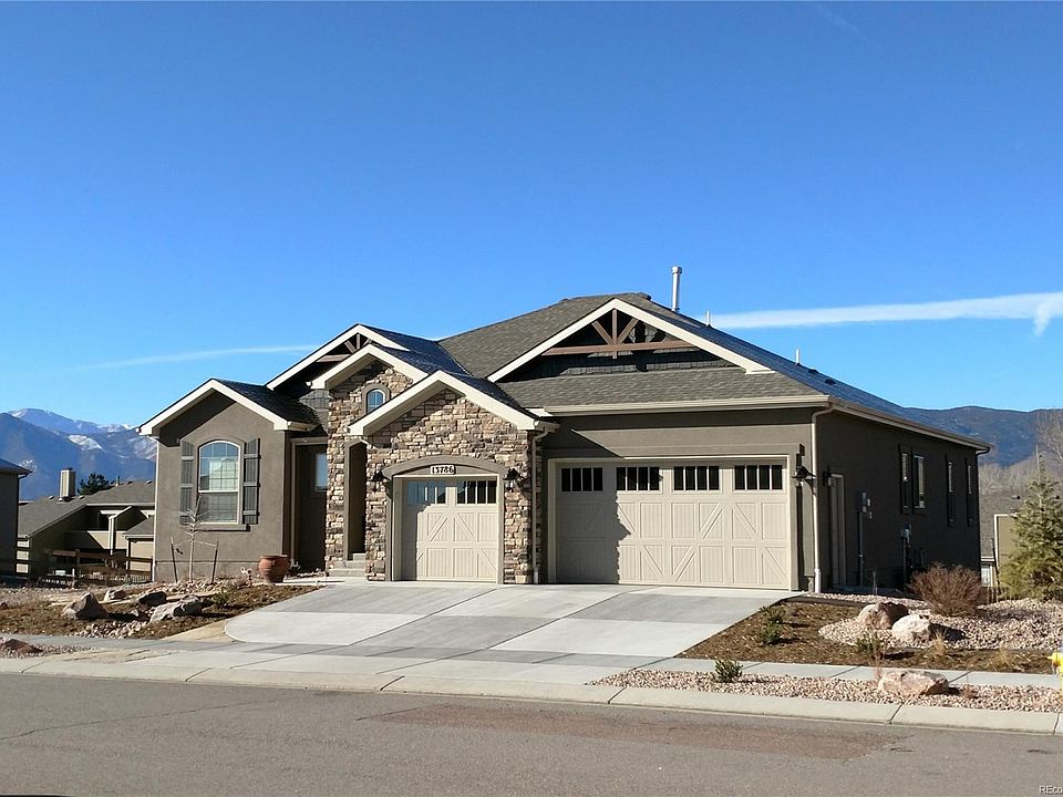 Gorgeous rancher with full WALK-OUT finished basement, backing to open space. Modern open floor plan, perfect for entertaining, with gourmet kitchen, vaulted ceilings & huge energy efficient windows facing Pikes Peak & the front range! Imagine sipping your morning coffee from the kitchen or back deck & enjoying this breathtaking view! Elegant finishes throughout w/many extras! Home was just completed in Dec 2016. Complete, custom 30k Landscaping (xeriscape) package done in the fall. Master bath wired for heated floors, tiles on hand. 5 bedrooms w/office that could be converted to 6th bedroom if needed. Nice, large storage area in basement. HUGE bedroom w/walk in closet in basement. Very Soundproof Home - Fully insulated between main floor and basement, master bedroom walls, and garage! Back patio is hot tub ready!