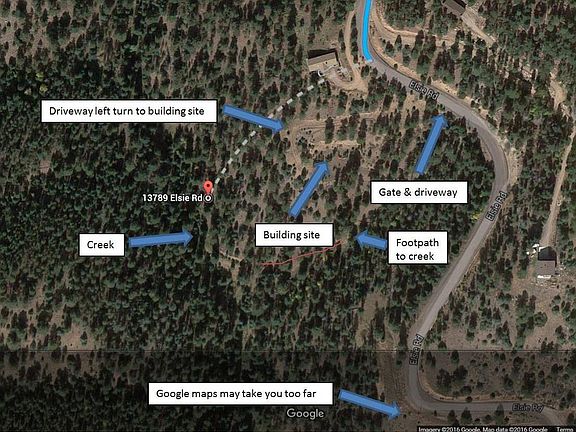 You can have a mountain stream on 12.5 acres in the foothills. Stream is one-foot wide now but can overflow banks in the spring. See videos. Partial views of Pikes Peak as you look down the valley. Driveway installed but may need clean-up. Large flat home pad with southern exposure already excavated. Foot path starting at building pad site heads down to the mountain creek. County maintained road with school bus service and only 22 miles from C-470. Road paved, last 1.5 mile is well-maintained gravel. Zoned for highly-rated Elk Creek Elementary, West Jefferson Middle and Conifer High. Bring a picnic basket when you view - just haul out your trash. Your hide-away is only ten miles to Conifer shopping including Natural Grocers, Safeway, King Soopers & Starbucks. Local entertainment includes Stagedoor Theater, Meyers Ranch Open Space, Reynolds Park trails, Conifer Historical Society, Staunton State Park and Conifer Community Park with zip-line. Wildlife - see deer video. Stream gets lots wider during spring snow melt so don't set your picnic tables and benches too close to it.