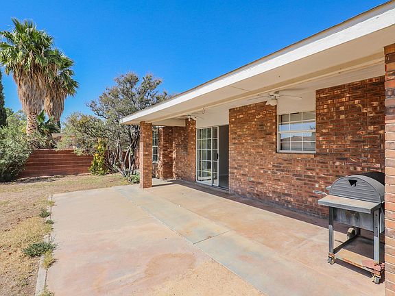 Discover this lovely 3-bedroom, 2-bath, 2 car garage home with ample updates throughout. Located just minutes from Holloman Air Force Base, it is nestled towards the end of a quiet street in the desirable Desert Villa Estates community. The kitchen features solid surface counters and an adjacent dining area. The home is laid out with a convenient split floor plan. On one side are 2 bedrooms and a full bath. The other side offers the primary bedroom that includes a large ensuite bathroom with jetted tub, separate shower, double sink vanity and walk-in closet. The home’s roof is approximately 3 years old, water heater is less than 2 years old, and the water softener is new! Washer and dryer are included with the home too. Outside the spacious backyard provides an ideal canvas for outdoor activities and relaxation in the sunny weather. There is a 10ftx10ft metal shed in the backyard for additional storage. The $25/month HOA fee provides you an array of amenities, including a gated community pool for summer cooling, a covered picnic area, a playground, and both basketball and tennis courts. Don’t miss the opportunity to make this wonderful home yours!
